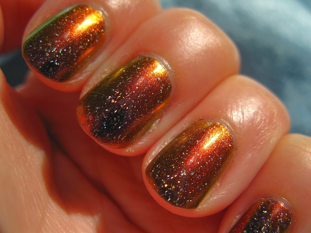 Ez is a Galaxy kollekció része, holo pelyhes multikróm lakk, amelynek színe az óarany (tehát zöldes arany)-rézvörös- korallpiros-rózsaszín-rózsás lila vonalon váltakozik. A Solar Flare-nél több benne a holo pehely, ezt Petra swatchain ellenőrizhetitek.